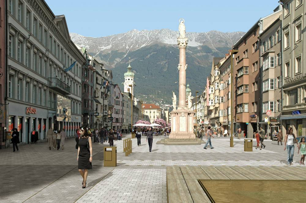 因斯布魯克建立于1239年。這座美麗的小城坐落在阿爾卑斯山谷之中,旁邊流淌著因河。 奧地利的高山,就跟她的音樂一樣,是世界知名的。蒂洛爾州則是阿爾卑斯山的心臟。無論是在因斯布魯克的哪一個角落,都能見到白雪覆蓋的山巒。因為北面被山脈遮擋,所以因斯布魯克氣候宜人,是國際旅游的勝地。