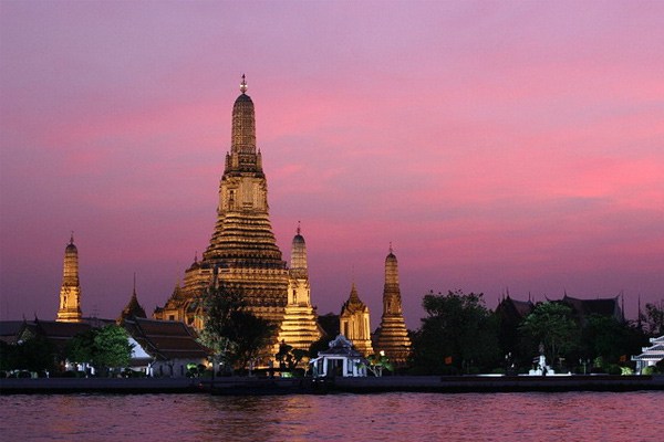 在湄南河及其支流上游覽,最引人眼球的,要算是那些宏偉壯麗、金光閃閃的寺廟、佛塔。這一群群多姿多彩的佛教建筑,與市內(nèi)高層建筑、居民住宅混建在一起,構(gòu)成一道奇特、亮麗的風(fēng)光。導(dǎo)游介紹:廟宇建在河左岸的較多,曼谷市內(nèi)約有一萬多間,所以泰國(guó)享有“千佛之國(guó)”、“黃袍之國(guó)”的聲譽(yù)。在湄南河及其支流兩岸,有幾座著名的寺廟:一是玉佛寺,它與大王宮相連,整座佛寺裝飾得金碧輝煌,富麗堂皇。大雄寶殿內(nèi)供奉的翡翠玉佛(釋迦牟尼),是泰國(guó)最重要最有價(jià)值的鎮(zhèn)國(guó)之寶。二是鄭王廟,位于湄南河西岸。它曾被定為鄭昭王(鄭昭王之父是華人)的御用寺院,其最富吸引力的建筑物是位于正中的“拍攀”大塔。這塔高79米,在晨曦之際,陽光照射,寶塔的頂峰會(huì)發(fā)出萬丈光芒,因此寺廟又被稱為黎明寺。三是臥佛寺,又稱菩提寺,它與鄭王廟正好隔岸相望,是曼谷最老和最大的寺院。寺內(nèi)供奉著一尊獨(dú)特大臥佛。這里一向被視為泰國(guó)第一所民間教育中心,故享有“泰國(guó)第一大學(xué)”之美譽(yù)。此外還有王孫寺、金佛寺、云石寺、金山寺等著名寺廟。