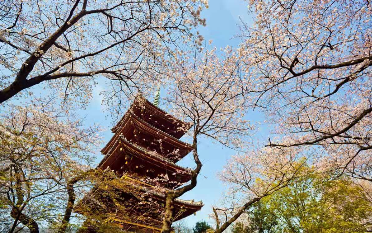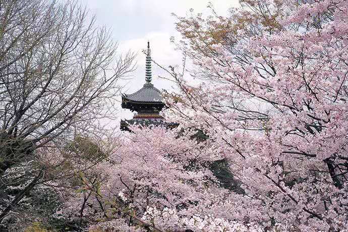 早在1624年便修建完備的寬永寺,至今仍立于不忍池畔。正是寬永寺建立之時移種的櫻花,開啟了上野公園賞櫻名園的歷史。如今上野公園已有1300多株櫻花,其中櫻花名品“染井吉野”,就是由上野公園開始而為世人廣知的。每年櫻花花季時,上野公園櫻花大道的緋紅云朵,早已在魯迅筆下化為國人對日本櫻花的第一印象。而花開時節(jié)在夜間燈光下觀賞“夜櫻”,是日本人賞櫻的獨(dú)特方式。
