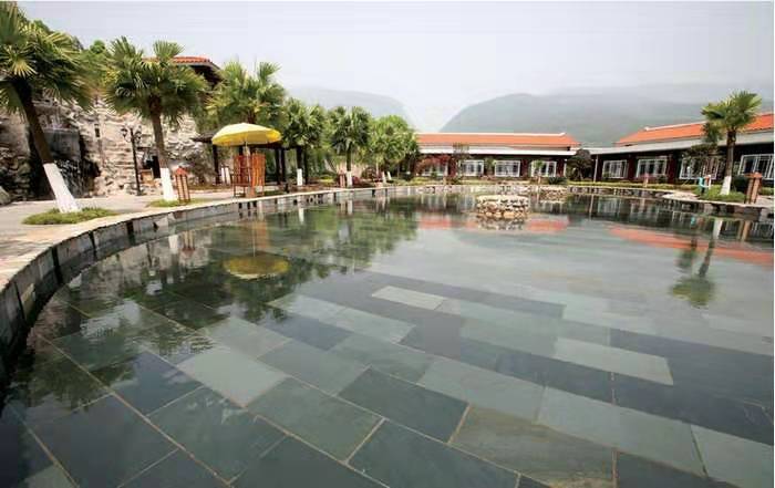 石板溫泉又叫“地?zé)釒А?,設(shè)計成為下面有溫泉水加熱的平滑石臺,游人可躺在上面接受熱石療,從而改善血液循環(huán)。