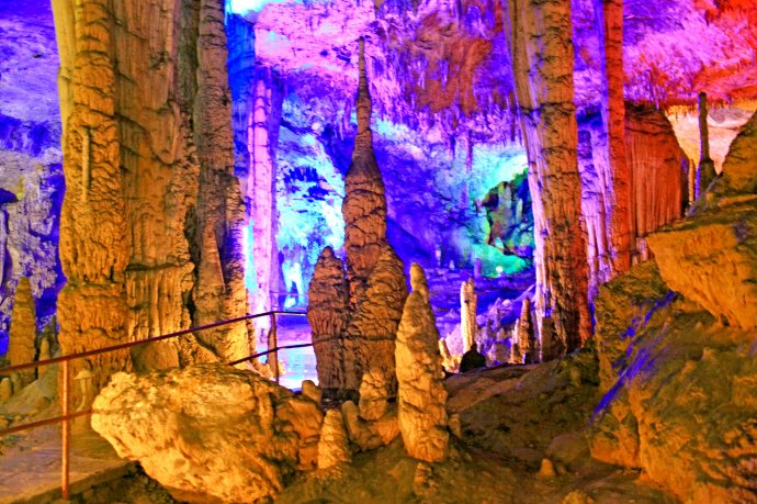 九天洞距市區(qū)70公里。九天洞百余處景點(diǎn)、景觀堆珍疊玉,藏奇納秀,神秘莫測(cè),幽深無(wú)堰,享有“世界奇穴之冠”、“亞洲第一大洞”諸桂冠。洞分上、中、下三層,最下層低于地表面400多米。洞內(nèi)36支洞交錯(cuò)相連,內(nèi)有30余座大廳、10余座洞中山、6方千丘田、5座自生橋、3段陰河、3個(gè)天然湖、12瀑、3井等景。洞中石林密布,鐘乳懸浮,巖漿鑄成的各種精致景物婀娜多姿。洞中的石筍、石柱、石幔、石花、石人、石獸等千姿百態(tài),不可名狀,紛呈紅黃綠白黑灰諸色,可謂五彩繽紛,琳瑯滿目。其中九星山玉柱、九天玄女宮和壽星宮三大奇觀堪稱景絕蓋世。
