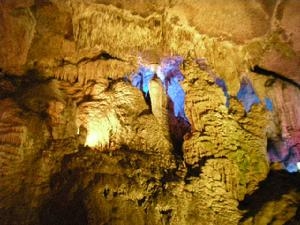 游完了“人間”一層最后一個(gè)洞——孔圣洞,便可沿著山道逶迤而下,一直是到羊羔泉邊的因果洞。這是一個(gè)講佛家因果報(bào)應(yīng)的洞。該洞成洞年代不祥,版權(quán)所有山東聊城聊之旅國(guó)際旅行社有限公司,轉(zhuǎn)載必究!大約與其七洞同時(shí)。洞高3.1米(最高處有9米)寬10米左右(最寬處13米),深10—50米(相傳通陰河,里面還有獨(dú)木舟,一直要以通到百里之外的茅岡仙差河)。因果洞門(mén)口上方有“因果洞”3個(gè)大字。入洞后,第一進(jìn)可以看到牛頭馬面人身像,第二進(jìn)則供奉著閻王。入口處,有一匾額,上書(shū):“今來(lái)善惡”。一付對(duì)聯(lián)是:“因?yàn)樯埔驗(yàn)閻嚎傆浬?,果招祥果招殃分還死后?!比攵春蠊饩€暗淡,陰森可怖,真乃名副其實(shí)的“地府”。 峰泉洞,因有峰泉而得名。它座落在玉皇洞以西,距玉皇洞約3.5公里,是九洞之一,而且修建最早。該洞分為三進(jìn),規(guī)模較大。洞內(nèi)原有匾額,止書(shū)“溟名泉”,對(duì)聯(lián)為:“南海島山火煙高,西天白水金鎖霞”。沿洞深入,二進(jìn)內(nèi)可看到“八仙”鑿像與觀音坐蓮臺(tái)像。還可看到“古今慈航”匾額與九處題壁詩(shī)詞。洞內(nèi)還有八洞神仙坐騎怪獸,如青龍、白虎、青獅、白象等。洞內(nèi)的人與獸像,都各具怪態(tài),栩栩如生,具有很高的藝術(shù)欣賞價(jià)值。進(jìn)入溶洞的第三層,洞內(nèi)寬敞,還有“千丘田”、“跪拜堂”等。洞內(nèi)流水潺潺,沙堆如灘,不時(shí)還有泉魚(yú)戲游。好一處洞天福地!