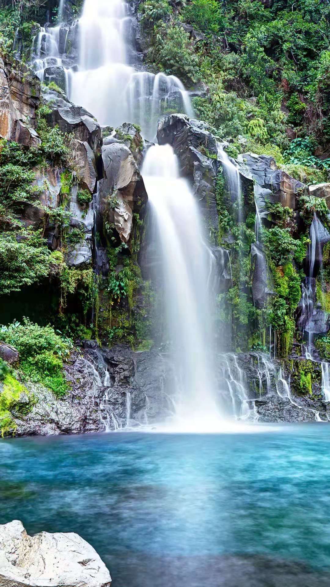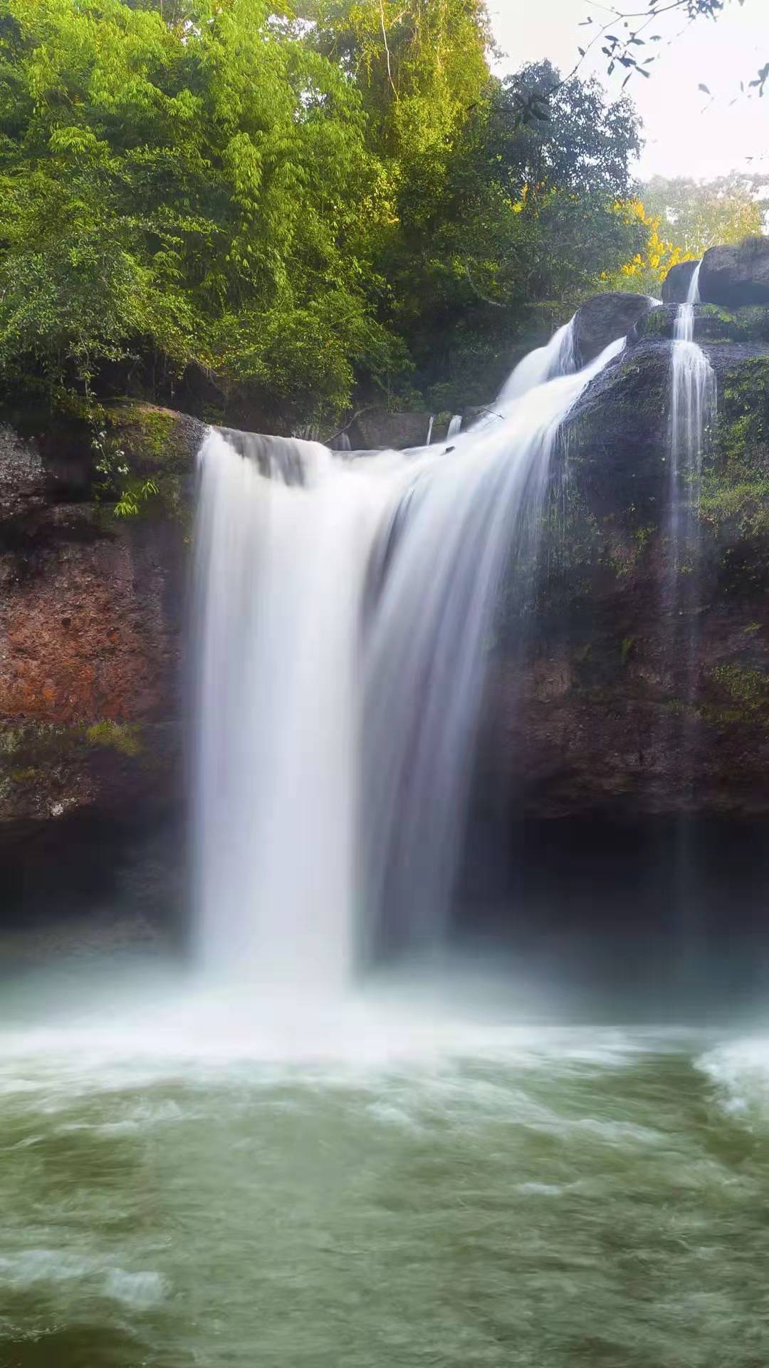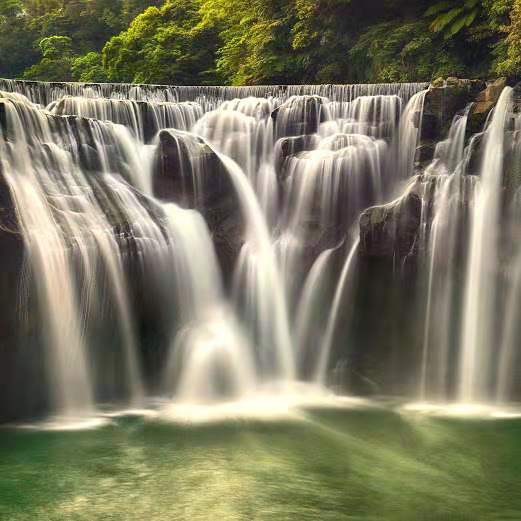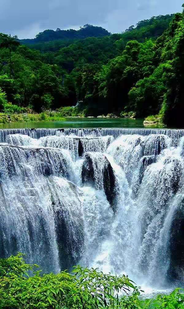 因瀑布如千軍萬馬奔騰、傾瀉而下、水聲四起,墜入一大片寬廣深潭,彌漫的水氣經(jīng)陽光折射,在潭面上映照出美麗的彩虹,與鄰近的“大華壺穴”都有大自然鬼斧神工之美,成為臺鐵平溪支線著名景點,相當(dāng)受游客歡迎。