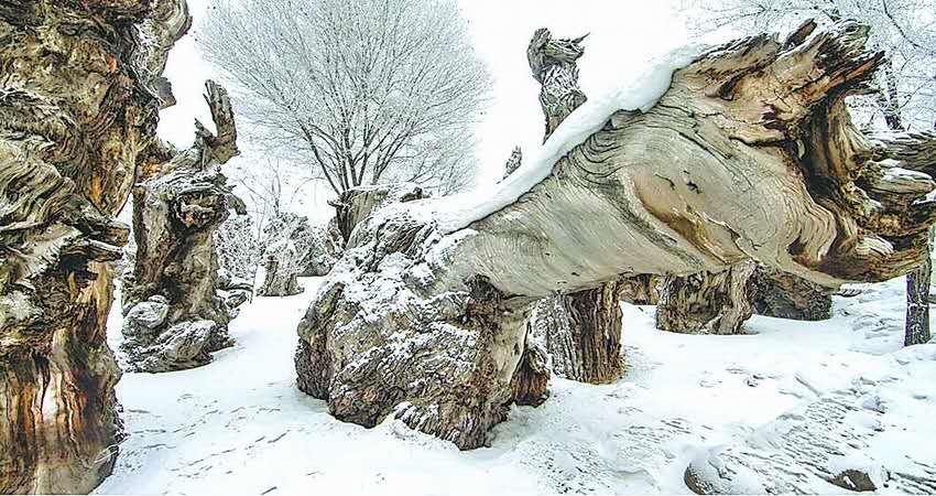 新疆古生態(tài)園內(nèi)有近三百根硅化木,是世界最大的侏羅紀(jì)硅化木集中保護(hù)基地。