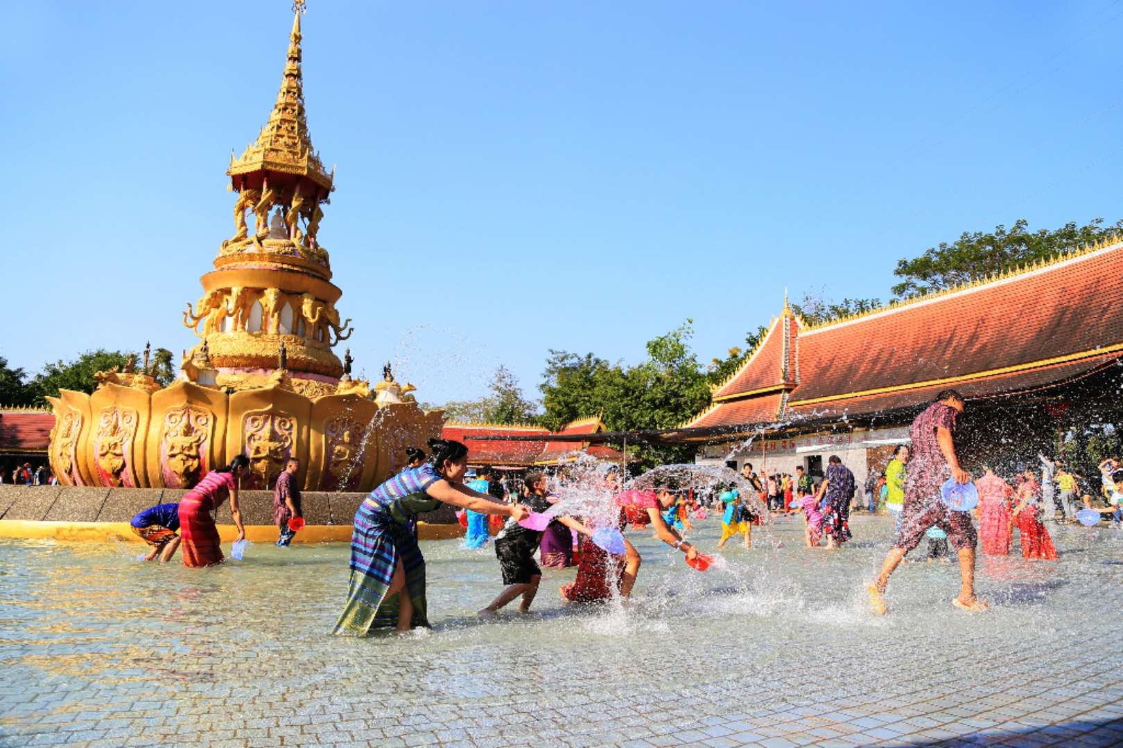 南傳佛教對傣族社會的政治、經(jīng)濟(jì)、文化藝術(shù)等都有著極深厚的影響。傣族數(shù)百部長篇敘事詩都是在佛教傳入后出現(xiàn)的。傣文的大藏經(jīng),號稱八萬四千部,大部分刻寫在貝葉上,稱貝葉經(jīng)。西雙版納的傣族人們?nèi)裥叛瞿蟼鞣鸾?,傣族男孩到?-10歲都要入寺去過僧侶生活,他們在那里學(xué)經(jīng)識字,一般在1-5年還俗回家。每逢潑水節(jié)、關(guān)門節(jié)、開門節(jié)等重要節(jié)日,傣家人都要到佛寺里賧佛。在西雙版納,佛寺遍布村寨,幾乎是一村一寺或二村一寺,其建筑風(fēng)格也各不相同。如今,在西雙版納的傣族村寨中仍有500多座佛寺、200多座佛塔。而勐泐大佛寺是所有佛寺中最大的,地位也是是至高無上的,是傣家人心目中的圣地。