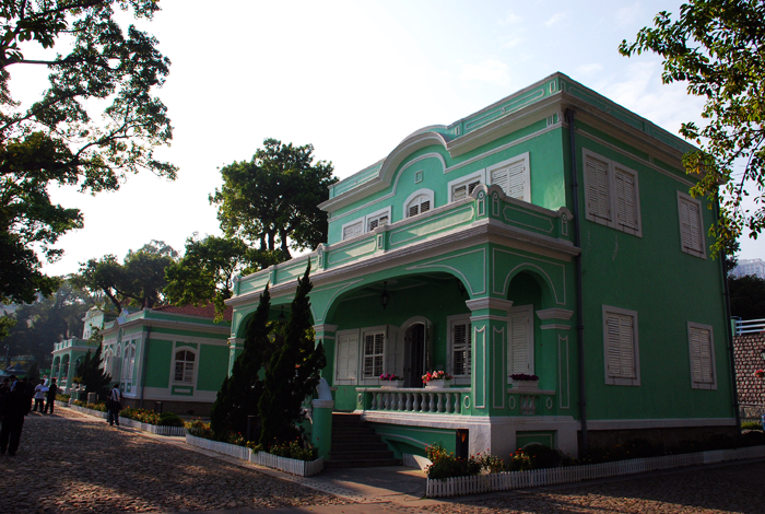 面臨大海的海灣,昔日曾是水上飛機(jī)的起落點(diǎn)。兩端圍繞著小山崗,風(fēng)平浪靜、綠樹成蔭、環(huán)境十分幽雅。當(dāng)初是葡國(guó)高級(jí)官員的官邸,后來澳門政府旅游司把它改建為博物館,1992年評(píng)為有建筑價(jià)值的房屋群,前三幢為博物館、后二幢為展覽館和迎賓館。特區(qū)政府成立,正式作為住宅博物館對(duì)外開放。