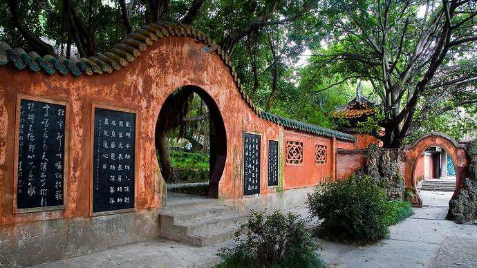 東漢建武十二年(36年),劉秀入川,公孫述戰(zhàn)死,白帝城毀于戰(zhàn)火.如今,城墻遺跡仍清晰可見。在公孫述稱帝的12年間,各地戰(zhàn)亂頻繁,而白帝城一帶卻比較安寧。后人為懷念他,在白帝山上建廟,立其像祭祀,故稱“白帝廟”。白帝廟坐落在瞿塘峽口的白帝山上。遠(yuǎn)遠(yuǎn)望去,紅墻顯影,樹木蔥郁,樓臺(tái)亭閣點(diǎn)綴其問。朝霞如錦、彩云繚繞之時(shí),更有仙山瓊閣之美。