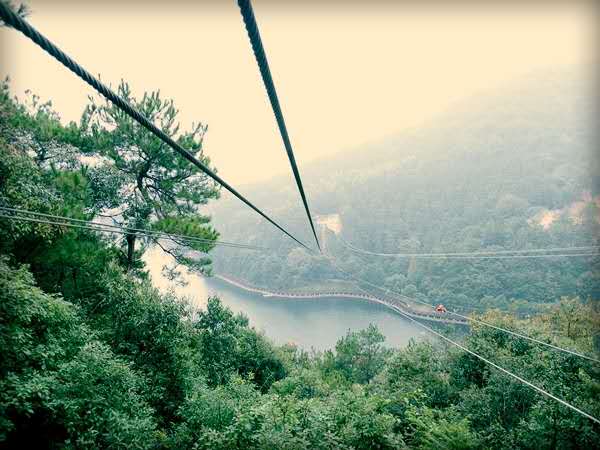景區(qū)最高峰,也是長株潭三市之間最高峰,懸崖峭壁,地勢險(xiǎn)峻,立于山頂,北眺長沙,南望株洲,西瞰湘潭,可見湘如玉帶環(huán)繞,三市盡在眼底,持手提電話機(jī)在此,可心收到三個城市的電訊信號。