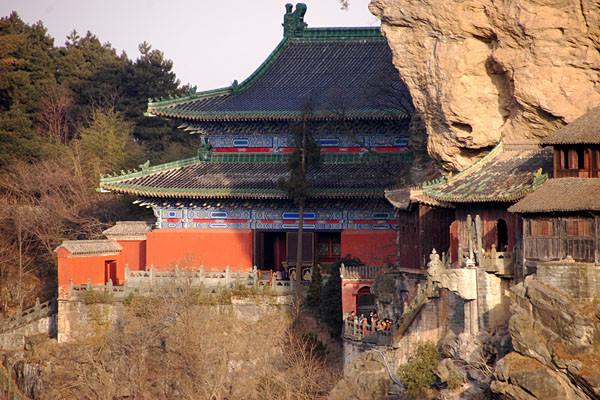 元至元二十二年至泰定五年(1285~1328年)在山中大建宮觀,南巖宮是其一?,F(xiàn)僅存宮中石殿,石雕仿木結(jié)構(gòu),殿內(nèi)有“天子臥龍床”組雕和“三清”塑像,四面環(huán)立500鐵鑄靈官塑像,均生動(dòng)逼真。殿外遠(yuǎn)近有疊字峰、金鼎峰、滴水崖、崇福崖、白龍?zhí)兜葎倬?,更有仙山樓閣之妙。版權(quán)所有山東聊城聊之旅國際旅行社有限公司,轉(zhuǎn)載必究!殿外崖前有雕龍石柱,橫出欄外2.9米,寬僅30多厘米,上雕盤龍,龍頭置一小香爐,俗稱龍頭香。石殿右下方崛起一峰,上建梳妝臺、飛身巖、相傳為“真武”舍身成仙之所。