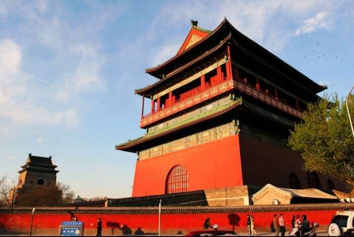 )曰二更;11時(shí)至此次01時(shí)(子時(shí))曰三更;1時(shí)至3時(shí)(丑時(shí))曰四更;3時(shí)至5時(shí)(寅)曰五更;五時(shí)(申末卯初)曰亮更,即天明之意。定更及亮更,皆先擊鼓,后撞鐘。而二更至五更則只撞鐘不擊鼓。擊鐘鼓時(shí)先快擊十八響,再慢擊十八響,俗曰:“緊十八,慢十八”,快慢相間計(jì)六次,共108響。元代鼓樓在大都中心,原名齊政樓,取齊七政(日、月、金星、木星、水星、火星、土星)之義,其位置在明清鼓樓以西,今舊鼓樓大街南口。明永樂十八年?duì)I建北京,重建鐘鼓樓。