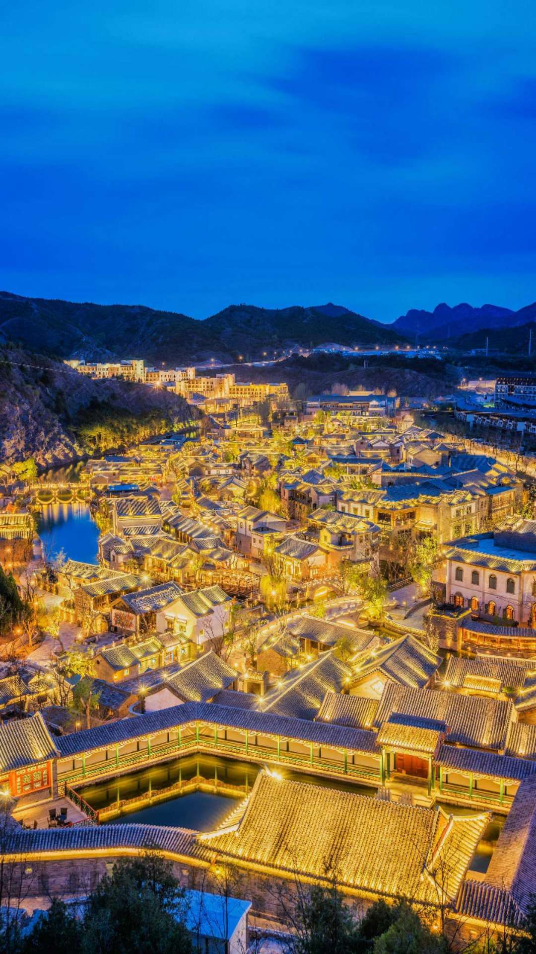 最險的司馬臺長城,坐擁鴛鴦湖水庫,是京郊罕見的山水城結(jié)合的旅游度假景區(qū)。夜景堪稱一絕,目前已成為北京夜游新地標。與河北交界,交通便捷,距首都國際機場和北京市均在1個半小時左右車程,距離密云區(qū)和承德市約45分鐘車程。景區(qū)內(nèi)建有精美的民國風格的山地四合院建筑43萬平方米,總占地面積9平方公里,集觀光游覽、休閑度假、商務(wù)會展、創(chuàng)意文化等旅游業(yè)態(tài)為一體,是長城腳下獨具北方風情的度假式小鎮(zhèn)。