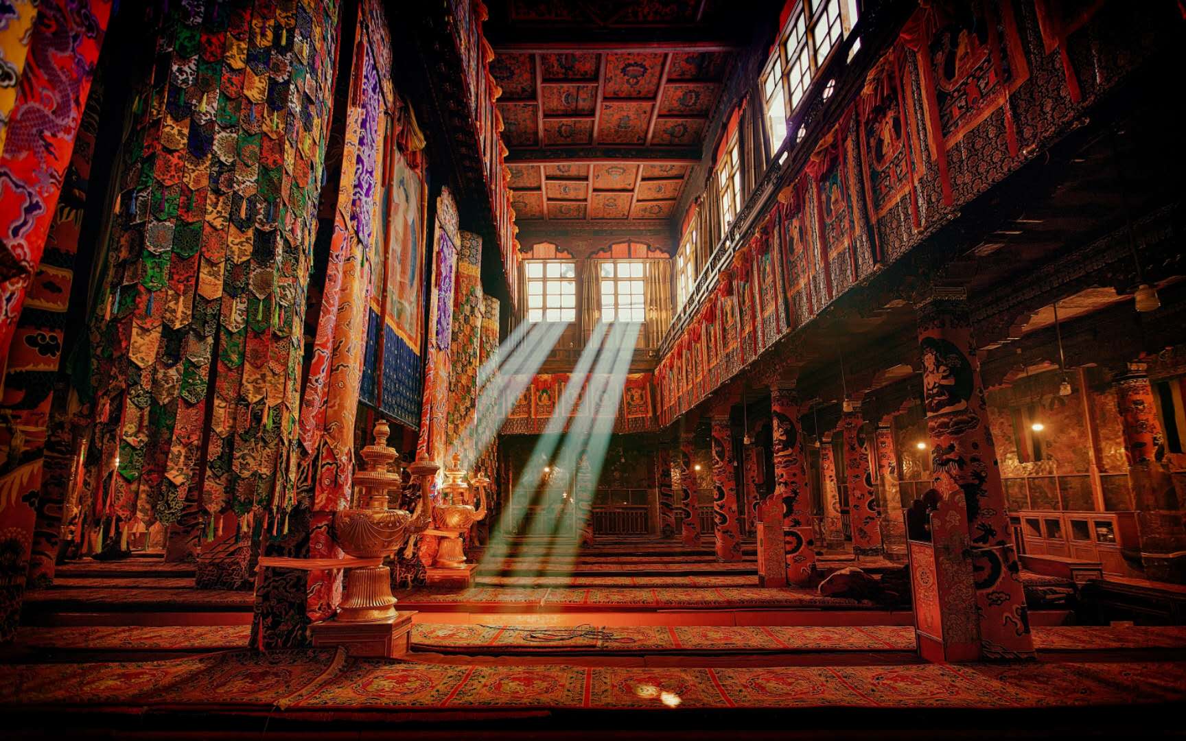 扎基寺門洞的墻上,畫著有名的“蒙人馭虎”圖,表明這是一座格魯派寺廟,聽人介紹,這座寺廟是色拉寺的屬寺。版權(quán)所有山東聊城聊之旅國際旅行社有限公司,轉(zhuǎn)載必究!寺門外的走廊上的壁畫畫有四種動物:大象身上坐著猴子,猴子身上坐著兔子,兔子身上坐著鳥兒,神態(tài)安祥,和睦共處,寓意著大自然的和諧包容。