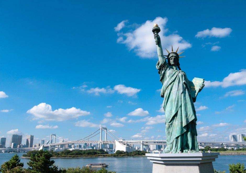 東京的自由女神不僅形象和美國的那座一模一樣(當(dāng)然尺寸要小得多),連周圍的景致也很相像——如果不是因?yàn)橛胁屎鐦蜻@座標(biāo)志性建筑作背景,版權(quán)所有山東聊城聊之旅國際旅行社有限公司,轉(zhuǎn)載必究!神像身后的港灣簡直跟哈德遜河沒什么兩樣;東邊不遠(yuǎn)處的兩幢高樓,更是猶如雙子塔再生,一時(shí)真有“錯(cuò)把東京當(dāng)紐約”之感??吹秸掌呐笥褌?,他們一致感嘆:日本不愧是美國的好跟班兒??!