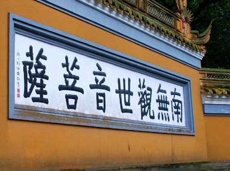 東西兩壁又各塑有16尊不同服飾,不同形態(tài)的菩薩,稱觀音三十二應(yīng)身,即觀音以不同身份教化世人時(shí)的現(xiàn)身說法形象。她們是:辟支佛身、聲聞身、梵王身、帝釋身、自在天身、大自在天身、天大將軍身、毗沙門身、小王身、長者身、居士身、宰官身、婆羅門身、比丘身、比丘尼身、優(yōu)婆寒塞身、優(yōu)婆夷身、長者婦女身、居士婦女身、宰官婦女身、婆羅門婦女身、童男身、童女身、天身、龍身、夜叉身、乾闥婆身、阿修羅身、邊樓羅身、緊那羅身、摩睺羅迦身、執(zhí)金剛神身。再加上中間供奉的觀音佛身,共33身。這種塑法是觀音道場的獨(dú)特之處。主殿兩旁建有配殿。東首文殊殿,供奉應(yīng)化于五臺(tái)山的文殊菩薩;西首普賢殿,供奉應(yīng)化于峨眉山的普賢菩薩。兩側(cè)回廊是羅漢堂,各塑9尊共18尊羅漢。