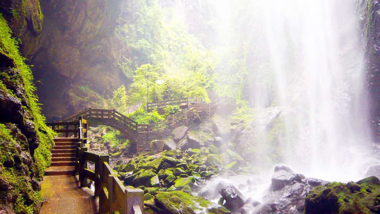 仰望壁立千仞,天光曦微,讓人昏昏然不知身之何處??梢哉f,觀龍水峽地縫,可知百萬年地質變化。幽邃夢境龍水峽喀斯特峽谷地貌的濃縮精華版,全長4公里,山道彎彎嵌綠樹,小溪潺潺揚迷霧,幽邃的龍水峽地縫靜得讓人聽得到心跳。人在棧道行,水在腳邊流,水因地勢、亂石而異向,或急或緩。身在谷底,仰視天小,峰回路轉,遠樹白云,俯仰之間,不由頓生柳暗花明之感。俯身掬水濕面,溫潤如玉,跋涉的塵埃早已煙消云散,疲憊的身心在此經(jīng)拂,頓覺清爽沁入五臟六腑,這大概是一種凈化吧……