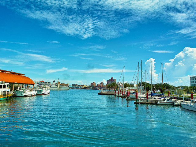它的港口的地理形勢十分優(yōu)越,是利用自然瀉湖修建而成的。港區(qū)外側(cè)有一條西北-東南向的沙洲,即旗津半島,長達11.3公里,平均寬達200米,如同一條巨龍蜷臥在臺灣海峽的碧波中,成為一位天然的防波堤,為高雄港遮風避浪。壩內(nèi)港闊水深,清波蕩漾,壩外駭浪洶涌,水天相連。港區(qū)的西北端,有一缺口,寬136米,與外海相連,這就是高雄港的第一港口-旗后港口。由于兩側(cè)聳立著壽山和旗后山,形成兩山夾峙,形勢極為險要。但因?qū)挾扔邢蓿?萬噸以上的貨輪不能進入。1967年,在旗津半島市面的崩隙處,又修筑了第二進出口。其寬度為250米,水深16米,可供10萬噸級的輪船出人。港區(qū)內(nèi)設(shè)有深水碼頭16座,淺水碼頭4座,登陸艇碼頭2座和3個貨柜儲運中心。港內(nèi)各種船只云集,進進出出,十分繁忙。