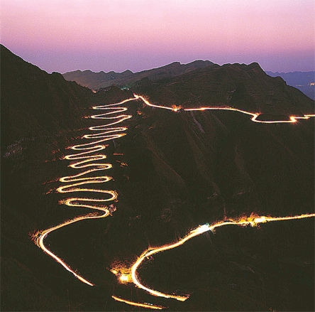 二戰(zhàn)時(shí)期,美國(guó)的援華物資經(jīng)過(guò)滇緬公路到達(dá)昆明以后必須要經(jīng)“二十四道拐”的滇黔線(xiàn)才能送到前線(xiàn)和重慶。二十四道拐成了中緬印戰(zhàn)區(qū)交通大動(dòng)脈,承擔(dān)著國(guó)際援華物資的運(yùn)輸任務(wù)。日寇曾多次派飛機(jī)對(duì)二十四道拐公路進(jìn)行轟炸,欲截?cái)嗲嵫屎怼?/span>美軍搶修后保留至今的二十四道拐公路,全長(zhǎng)4公里,有效路面寬約6米,山腳第一道拐與山頂?shù)诙牡拦臻g的直線(xiàn)距離約350米,垂直高度約250米,坡的傾角約60度左右,驅(qū)小汽車(chē)由下至上,爬完24道拐約需8分鐘,由上至下約6分鐘,雖坡陡彎急,但無(wú)驚恐之感?,F(xiàn)由縣公路局養(yǎng)護(hù),仍可通車(chē),但只有少量車(chē)輛通行。
