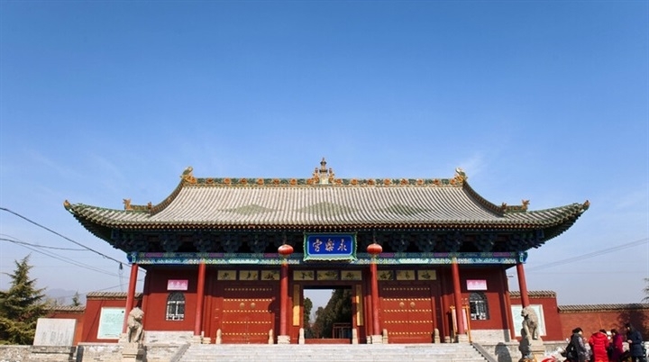 永樂宮,因故址在永樂鎮(zhèn)而命名,又名大純陽萬壽宮。永樂宮屬全國重點文物保護單位,原址位于山西省芮城縣永樂鎮(zhèn)招賢村,現(xiàn)址位于芮城縣城北3公里的龍泉村東側(cè)。永樂宮始建于元代,施工期前后共110多年。宮殿內(nèi)部的墻壁上布滿永樂宮壁畫。