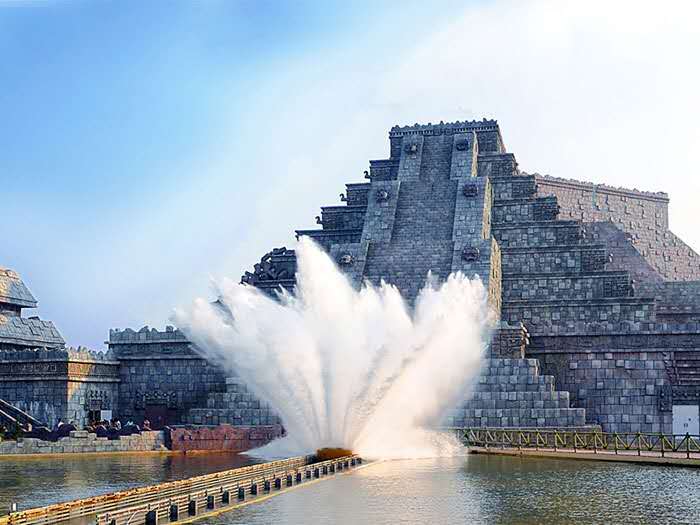 項(xiàng)目,游客將乘坐小船進(jìn)入危險(xiǎn)的侏羅紀(jì)時(shí)代,在茂密叢林里展開(kāi)一場(chǎng)驚心動(dòng)魄的冒險(xiǎn)。巨型恐龍的隆隆腳步震動(dòng)著大地、頭頂上盤旋著空中獵手、巨石突然從眼前滾落,緊張和恐怖彌漫四周。隨后游船從幾十米高的懸崖瀑布上急速下墜,讓游客在驚叫聲中經(jīng)歷一場(chǎng)永生難忘的恐龍島冒險(xiǎn)之旅。