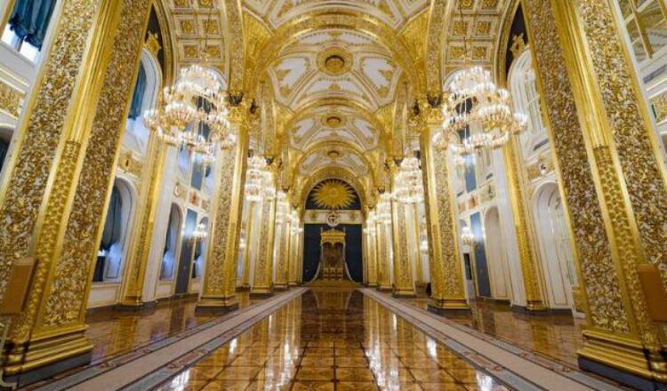 大克里姆林宮是克里姆林宮中的主要建筑之一??死锬妨謱m墻內(nèi),朝向莫斯科河有三列高窗的漂亮建筑物就是大克里姆林宮,1839~1849年在舊宮原址上建造,由古老的安德烈夫斯基大廳和阿列克山德洛夫斯基大廳聯(lián)結(jié)而成。大克里姆林宮外觀為仿古典俄羅斯式,廳室全部建筑式樣多樣,配合協(xié)調(diào),裝潢華麗。宮殿的正中是飾有各種花紋圖案的閣樓,上有高出主建筑物的紫銅圓頂,達(dá)13 米,并立有旗桿,節(jié)假日則升國旗。大克里姆林宮內(nèi)部呈長方形,樓上有露臺環(huán)繞的總面積達(dá)2萬平方米的700個(gè)廳室。從前,第一層除了處理政務(wù)的處所以外,全是沙皇私人宮室,白色寬闊的樓梯通往二層各廳,這里有格奧爾基耶夫大廳、弗拉基米爾大廳和葉卡捷琳娜大廳,從前還有安德烈耶夫大廳,曾是沙皇接見使臣的地方。格奧爾基耶夫大廳是大克里姆林宮中最為著名的殿廳,是俄羅斯工匠巧奪天工的建筑杰作。大廳呈橢圓形,圓頂上掛著6個(gè)鍍金兩枝形吊燈。每個(gè)吊燈重1300千克,圓頂和四周墻上繪有15~1 9世紀(jì)俄羅斯軍隊(duì)贏得勝利的各場戰(zhàn)役的巨型壁畫。大廳正面有18根圓柱,柱頂均塑有象征勝利的雕像。如今,格奧爾基耶夫大廳是政府舉行歡迎儀式的傳統(tǒng)地點(diǎn)。