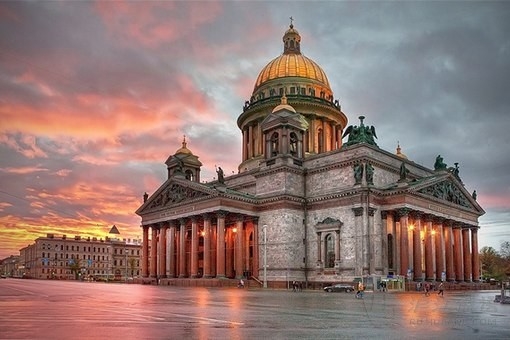 大教堂是羅曼諾夫家族獻給先帝彼得一世并為紀念圣徒伊薩基·達爾馬茨基(彼得生于他的紀念日)而命名,因此,為建這座豪華的殿宇皇室不惜財力。工程中運用了許多新技術和大膽的施工方法,其中用汞合金火燒法為圓頂鍍金,使巨大的圓頂歷經(jīng)一個半世紀從未整修依然金光燦燦。