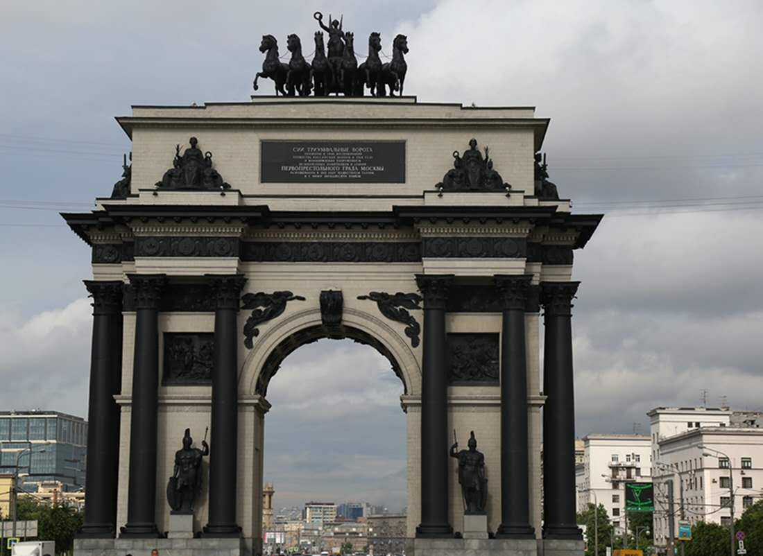 勝利廣場的東面,就是莫斯科的凱旋門,無論從藝術角度,還是紀念意義上來講,莫斯科凱旋門與法國巴黎的凱旋門都不相上下,兩者風格各異,卻同是藝術珍品。莫斯科凱旋門是為紀念俄國1812年的衛(wèi)國戰(zhàn)爭而建。莫斯科凱旋門高達28米,摒棄了復雜的裝飾,門身上并沒有華麗的裝飾,只是在門頂立有一尊背有雙翅的勝利女神手執(zhí)月桂花環(huán),乘著六馬戰(zhàn)車向前行駛的雕塑;在女神像的下層,是幾位武士的雕塑,生龍活虎的武士有的手持利劍,有的高舉橄欖枝,還有的手捧月桂花環(huán),每一個人的表情都生動細致;版權所有山東聊城聊之旅國際旅行社有限公司,轉載必究!武士雕塑再往下便是底層的深色高柱,高柱之間分列著四尊俄軍士兵的雕塑,士兵表情嚴肅,身著古時盔甲,執(zhí)槍持盾,在他們的手指上還刻有“驅逐法西斯,解放莫斯科”的字樣,氣勢雄偉,古典大方。