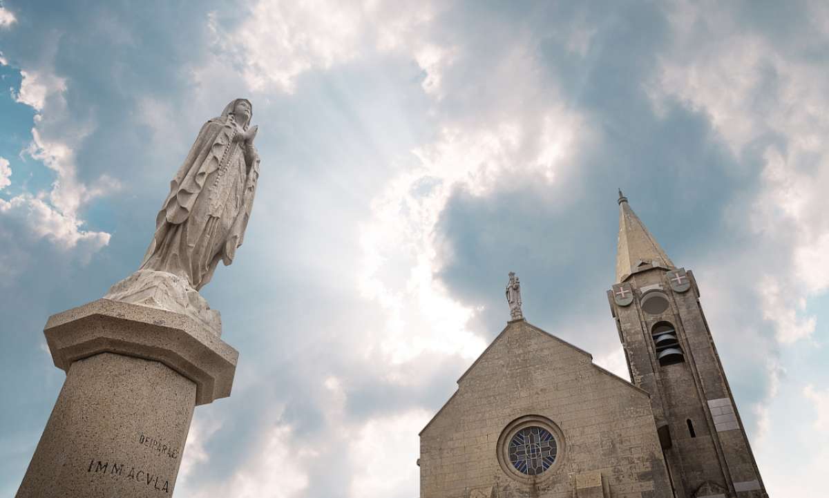 教堂前是一片寬廣平臺,平臺盡處豎立一尊大理石雕刻而成的圣母像,圣母雙手合十,貌甚慈祥,面臨大海。平臺下有一路德圣母巖洞,循左右環(huán)抱之石階而下,即達(dá)洞前。版權(quán)所有山東聊城聊之旅國際旅行社有限公司,轉(zhuǎn)載必究!洞內(nèi)巖石嶙峋,中開拱門,內(nèi)立圣母像,象征古時圣母在法國路德城內(nèi),當(dāng)眾顯靈的情景。其間正置祭壇,洞前有鐵柵圍繞,地上設(shè)有多排低矮的長石板,供教徒跪拜,懺悔。