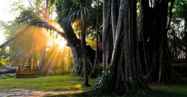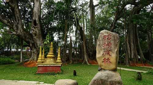 獨(dú)樹成林位于 打洛鎮(zhèn) 邊境貿(mào)易區(qū)內(nèi)的曼掌寨子旁,距離打洛鎮(zhèn)政府以南3.5公里,靠近中緬邊境的地方。這是一棵古榕樹,有900多年的樹齡,共有34個(gè)根立于地面,樹高50多米,樹幅面積2000多平方米,枝葉既像一道籬笆,又像一道綠色的屏障,成為熱帶雨林中的一大奇觀,打破了“單絲不成線,獨(dú)樹不成林”的俗語(yǔ)。