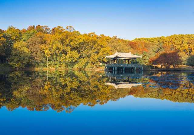流徽榭又名水榭亭,是南京鐘山風(fēng)景名勝區(qū)內(nèi)一處景色優(yōu)美的風(fēng)景點(diǎn),位于中山陵園,在中山陵至靈谷寺公路的南邊。榭長(zhǎng)14米,寬 10米,頂為乳白琉璃瓦,紅色立柱; 三面臨水,碧水如鏡,倒映水榭, 別有情趣。