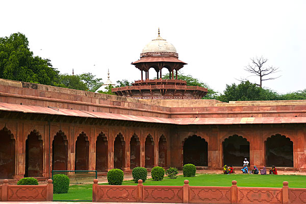 阿格拉宮始建于1565年,后經(jīng)第五代帝王沙·賈汗改建。因系用紅砂石筑成,故有“紅堡”之稱。宮內(nèi)樓臺(tái)殿宇優(yōu)美別致,有畫(huà)棟雕梁的覲見(jiàn)宮,有豪華壯觀的樞密宮和別具一格的鏡宮。鏡宮的墻壁和天花板上鑲嵌了成千上萬(wàn)塊玻璃,閃閃耀眼。阿格拉宮附近還有全用白大理石砌成潔白如雪的泰吉·瑪哈爾陵。此外,城內(nèi)還有莫臥兒王朝賈汗吉爾大帝皇后努爾·賈汗為她父親修建的伊提馬德·道拉陵墓以及莫臥兒王朝第三代帝王阿克巴陵墓和法塔赫布爾西格里古堡等文物古跡。