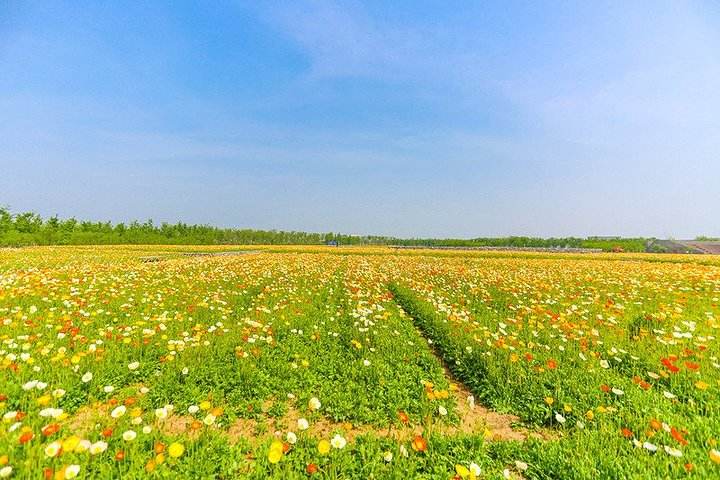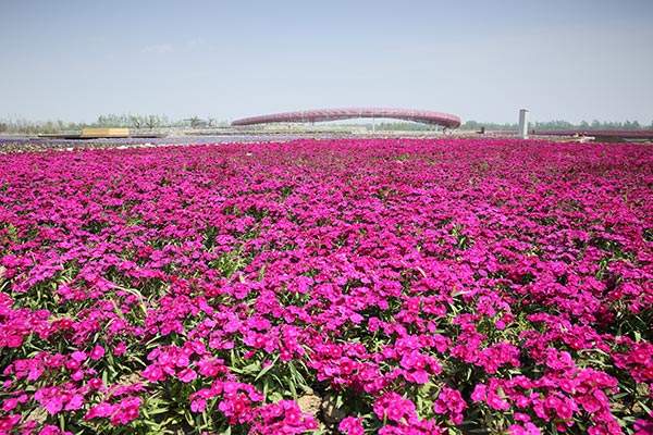 公園內(nèi)的“衲田花海”,總面積2220畝,由612塊花田 “縫補(bǔ)”拼接而成,融合了北方旱梯田的雄渾和南方水梯田的俊秀,與僧人袈裟異曲同工,又兼具納祥聚福之意,樸質(zhì)卻熠熠生輝。這里栽植著50多種花卉,自南向北形成黃、紅、紫三大色區(qū),呈現(xiàn)出海納百川之態(tài)、兼容并蓄之美。站在全長(zhǎng)2.3公里的彩虹橋俯瞰花海,聽(tīng)花開(kāi)花落,嗅濃郁芬芳,感受濃濃的原鄉(xiāng)情懷。