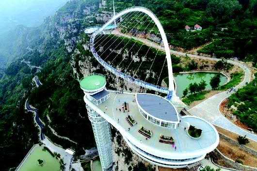 潭溪山百米觀光電梯—高空玻璃橋項(xiàng)目是潭溪山旅游區(qū)2016年開始建設(shè)的綜合性提升項(xiàng)目,共分為百米電梯、玻璃橋、懸崖酒店三個部分。其中,百米電梯采用360度全景觀光形式,運(yùn)行高度為101米,玻璃橋?yàn)槭澜缡桌裏o背索斜拉弧形玻璃橋,橋面跨度117米,懸空高度110米。該項(xiàng)目填補(bǔ)了山東全省山水景區(qū)高空項(xiàng)目的空白。 | |
