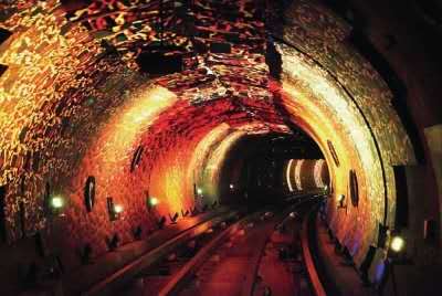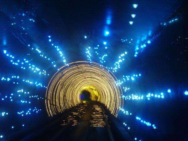 外灘觀光隧道是融交通與旅游功能為一體的又一標(biāo)志性景觀工程,它利用空間,運(yùn)用現(xiàn)代高科技手段,在隧道內(nèi)演示反映人物、歷史、文化、科技、風(fēng)景等各種圖案、景象及背景音樂,使過江過程帶有極強(qiáng)的趣味性、娛樂性和刺激性,給游客留下美好的記憶。連接浦江兩岸的圓形隧道內(nèi)徑6.67米,隧道全長646.7米,采用目前國際上最先進(jìn)的連續(xù)式軌道自動(dòng)車廂運(yùn)輸系統(tǒng),整個(gè)過江時(shí)間在2.5-5分鐘,每小時(shí)最大輸送量為5000人次。