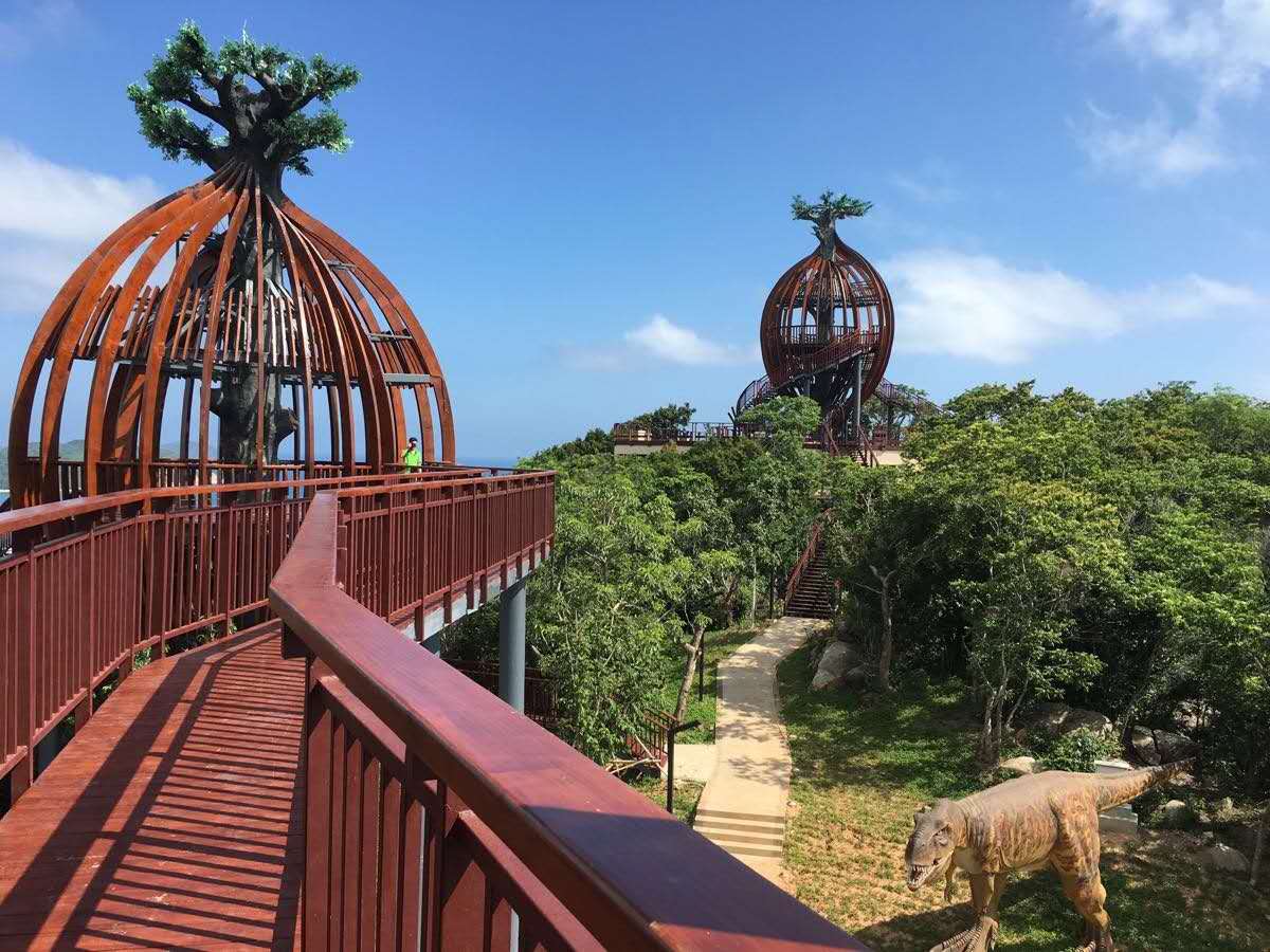 從景區(qū)主入口進(jìn)入,依次參觀亞龍灣印象區(qū):中心圖騰廣場、冰世界熱帶零度樂園、絲路貝殼館、絲路驛站海底餐廳、“蒙太奇炫影”潛水;濱海樂園區(qū):水上樂園、“天下第一灣”、濱海浴場、亞龍灣愛立方海上婚紗基地;山海相望區(qū):光陰流轉(zhuǎn)隧道、仁智橋、百歲階;觀海休閑區(qū):時運(yùn)廣場、不老松;山頂叢林區(qū):“愛之巔”樹梢行走、碟繭樹屋、叢林仙境;蝴蝶谷生態(tài)區(qū):開心樂園、蝴蝶谷生態(tài)園、蝴蝶谷博物館、雨林溪徑,然后按原路返回。