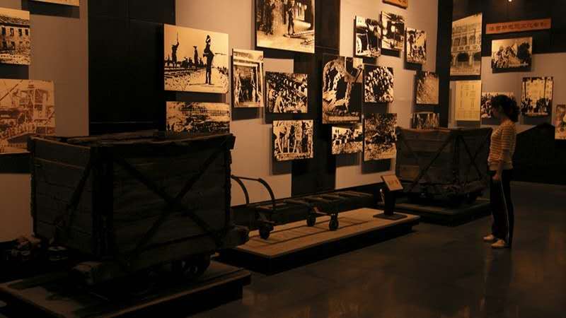 | 運(yùn)尸車:該運(yùn)尸車長(zhǎng)約200厘米,高約120厘米,鐵制,有3只車輪。這種運(yùn)尸車,是日本侵略者用來(lái)運(yùn)送被他們殘酷的盤剝壓榨,苦力折磨和殘暴的肉體刑罰而悲慘死去的無(wú)數(shù)中國(guó)人尸體的工具。 |