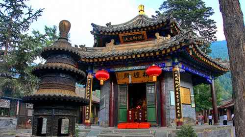 占地三千平方米,計有殿堂僧舍二十余間。過牌樓,進山門,見院內(nèi)的山門背后立有石碑兩塊:一塊立于明萬歷二十年仲秋,上書“五臺山重建佛頂庵碑記”;另一塊立于清康照歲次辛未仲秋,上書“青峰頂造像建亭記”。看來,黛螺頂又名青峰頂,佛頂庵是黛螺頂寺宇的另一種稱法。寺內(nèi)的第一座殿為站壇殿,殿座六角臺基,上部是六角重檐攢尖頂。作為殿建,在五臺山寺廟群中別具一格。殿內(nèi)主供站壇佛,釋迦牟尼佛不是常見的趺坐形樣,而是站立于佛壇之上。又站壇佛亦稱旃檀佛,因原來的站佛是用旃檀木雕成,故名。第二座大殿為五文殊殿,正面三間,側(cè)面兩間,外加半間寬的四面出廊,單檐歇山頂。殿內(nèi)供的就是集五座臺頂五種文殊法像于一室的五文殊,正中殿壇上,中間供中臺孺童文殊,左側(cè)供北臺無垢文殊,右側(cè)供南臺智慧文殊,左側(cè)殿壇供東臺聰明文殊,右側(cè)殿壇供西臺獅子吼文殊。版權(quán)所有山東聊城聊之旅國際旅行社有限公司,轉(zhuǎn)載必究!自從黛螺頂供五文殊以來,小朝臺的盛譽聞名遐邇。大殿前立的石碑,就是清乾隆御制碑,石碑背面的乾隆親筆題詩,其字跡的結(jié)構(gòu)豐滿圓潤,筆法剛勁流暢,堪稱書法藝術(shù)珍品。第三座后殿面闊五間,懸山_頂,殿階臺下長有一松一柏,松在北端,柏在南端,圍粗均在九尺左右,即是乾隆詩中所稱的“階下千年不老松”。松柏樹高大直立,無有彎曲,望去有如戟指藍天,為寺宇生色不少。
