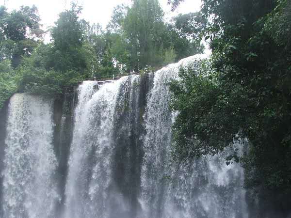 在波列昂通寺西南有一著名瀑布,叫荔枝山瀑布,位于暹粒河上游的一個(gè)開闊山谷,山谷左右有茂林修竹夾峙。水簾似的大瀑布沿石壁傾瀉而下,勢(shì)如萬馬奔騰。版權(quán)所有山東聊城聊之旅國(guó)際旅行社有限公司,轉(zhuǎn)載必究!瀑布分為兩節(jié),第一節(jié)約 25 米高,沿著石壁傾注在一塊約1000 平方米的平臺(tái)上。瀑水流過平臺(tái),到了一垛落差約 30 米高的絕崖峭壁上部,從這里再?zèng)_出峭崖,砰然跌落,又形成寬達(dá) 100 米的瀑布,響聲雷鳴,水花四濺,景色極為壯觀。平臺(tái)上分布著 16 個(gè)深淺不同的天然石洞,洞底有一層薄薄的黃沙,游人可以在洞中用瀑水洗澡。