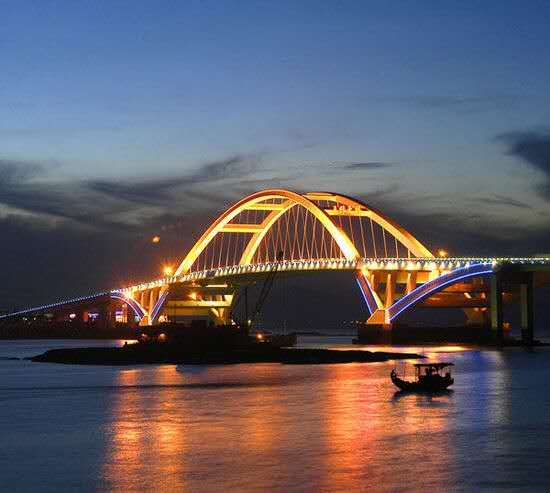 也是五緣灣開發(fā)的一個亮點。該橋型為繼云南小灣橋(主跨130米)和上海盧浦大橋(主跨550米)后,國內(nèi)第三座同類結構橋梁。 2004年,五緣大橋正式通車,環(huán)島路43公里主干道全線貫通,廈門島網(wǎng)絡狀的公路交通最外圍的一圈道路完全合攏成形。05年5月份,五緣大橋的西邊另外4座拱橋全部建成,它們是環(huán)島干道跨五緣灣特大橋、環(huán)湖里大道跨五緣灣特大橋和一號人行橋與二號人行橋。