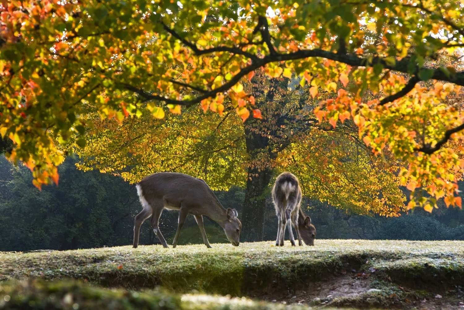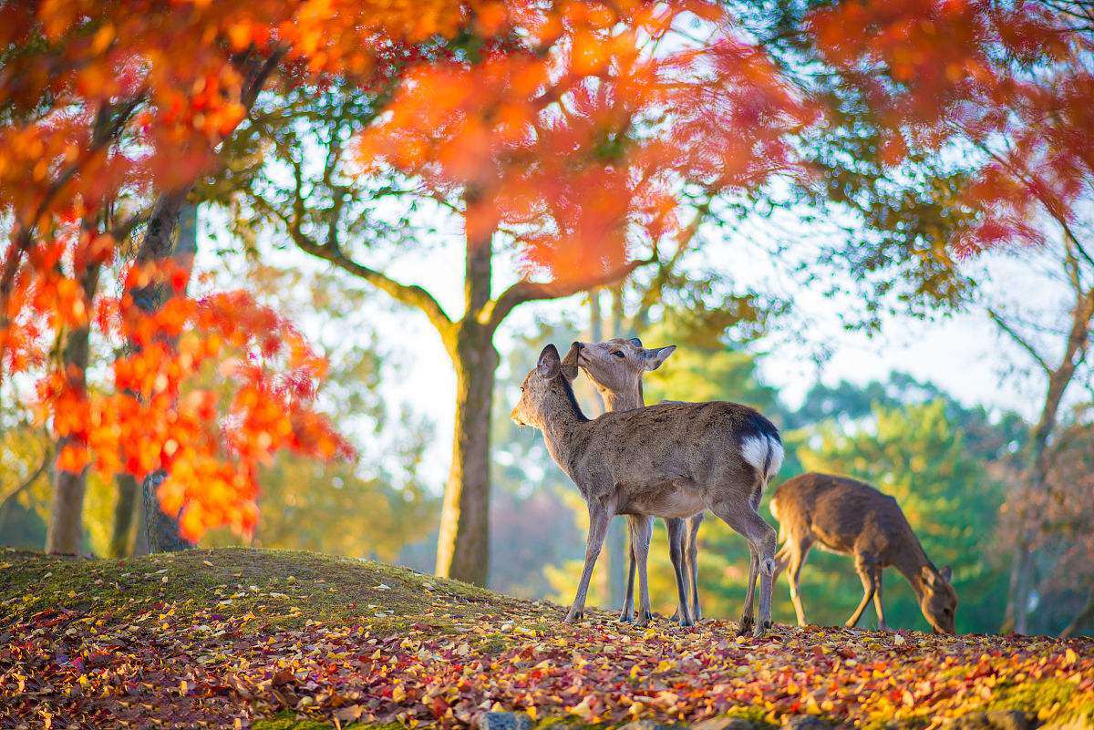 鋸鹿角,日語(yǔ)寫作“鹿の角きり”。為了保護(hù)游客的安全,并防止奈良公園中的樹木遭受損壞,每年10月份前半個(gè)月的星期日,奈良公園都要舉行一個(gè)“鋸鹿角”的傳統(tǒng)活動(dòng)?!颁徛菇恰钡倪^(guò)程是:稱為“勢(shì)子”的人將鹿抓住,灌入神酒讓它安定下來(lái),然后由神官將鹿角鋸斷。
