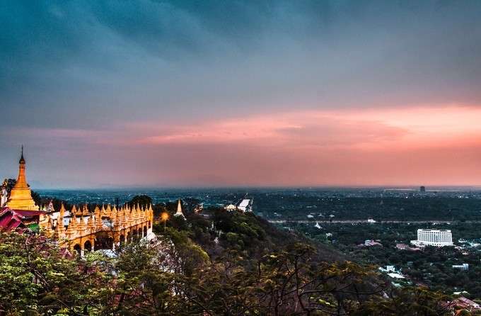 曼德勒的名字也是來(lái)自這座城內(nèi)最高的山丘——曼德勒山。當(dāng)年釋迦牟尼宣揚(yáng)佛法時(shí)路過(guò)此山,指著山下廣袤的土地,預(yù)言2400年后,這里會(huì)出現(xiàn)一座繁華的大城。曼德勒果然不負(fù)所望,在敏東國(guó)王的統(tǒng)治下,30年的榮景在歷史中點(diǎn)綴成不朽的一頁(yè)。