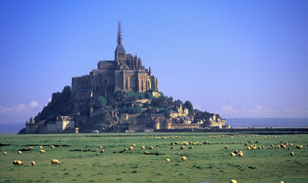 圣米歇爾山,法國著名古跡和基督教圣地,位于芒什省一小島上,距海岸兩公里。