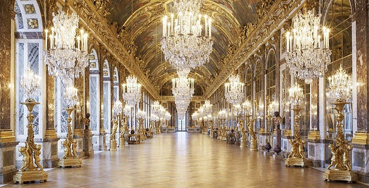 凡爾賽宮鏡廳:又稱鏡廊,被視為法國路易十四國王王宮中的一件“鎮(zhèn)宮之寶”,以17面由483塊鏡片組成的落地鏡得名。