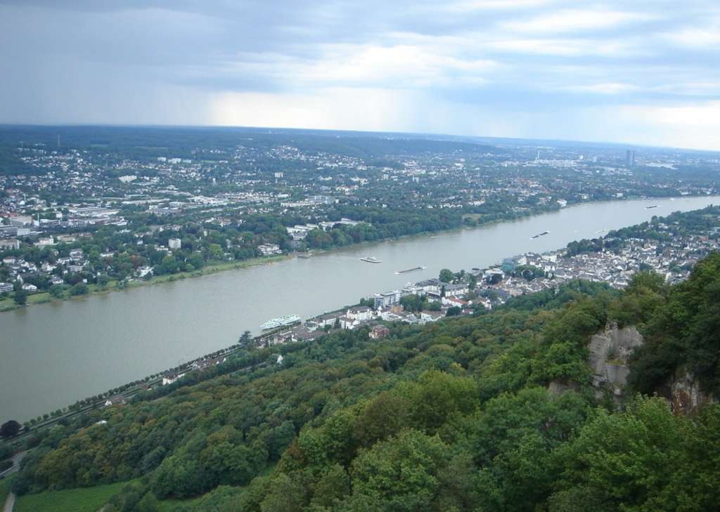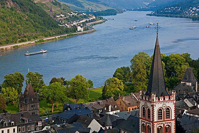 萊茵河中部是該河景色最為壯麗且最富有民間傳奇色彩的一段。在此長145公里的地段,萊茵河從西有洪斯呂克山脈(Hunsruck Mountains)、東有陶努斯山脈(Taunus Mountains)的險(xiǎn)峻、板巖覆蓋的山坡之間流過,形成一段曲折而深邃的峽谷。遠(yuǎn)至科布倫茨(Koblenz),兩岸山坡上布滿葡萄園;在科布倫茨,有摩澤爾(Moselle)河和蘭(Lahn)河與萊茵河會(huì)合。往下,兩岸遠(yuǎn)處有丘陵起伏,西邊有火山艾費(fèi)爾高原(Eifel Upland)的山麓丘陵,東邊有韋斯特林山(Wester Forest)的山麓丘陵。在安德納赫(Andernach),玄武巖的塞文高地(Seven Hills)突起于河的西邊。