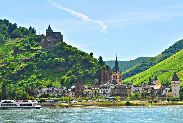 在德國境內(nèi)有867公里。沿途風(fēng)景最美的一段在中游的萊茵河谷段,從德國的美因茲(Mainz)到科布倫茨(Koblenz)間。這里河道蜿蜒曲折,河水清澈見底。人們坐在白色的游艇之上,極目遠(yuǎn)望,碧綠的葡萄園層次有序地排列在兩岸,一座座以桁架建筑而引人注目的小城和五十多座古堡、宮殿遺址點(diǎn)綴在青山綠水之中。版權(quán)所有山東聊城聊之旅國際旅行社有限公司,轉(zhuǎn)載必究!一段段古老的傳說不時(shí)把人們的思緒帶向遙遠(yuǎn)的過去,人們深深地陶醉在這充滿浪漫情趣的多姿多彩的萊茵河美景之中。為了保護(hù)自然風(fēng)景的原貌,萊茵河河谷段沒有架設(shè)橋梁,往來兩岸都靠輪渡。兩岸風(fēng)景有點(diǎn)像中國的三峽,但山?jīng)]有三峽的高、陡。沿河兩岸山坡上遍布葡萄園,點(diǎn)綴著無數(shù)羅馬時(shí)代的古堡。