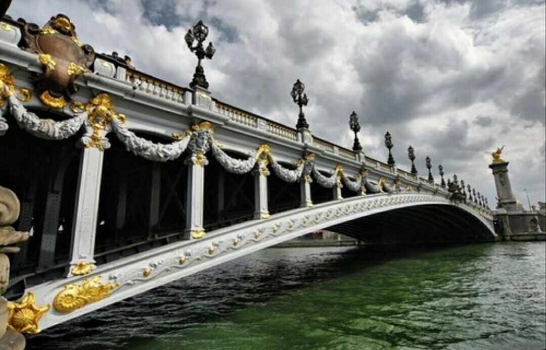 亞利山大三世橋坐落在風光明媚的法國巴黎塞納河上,于1896 年10 月7日由沙皇尼古拉二世和當時的法國總統(tǒng)佛朗索瓦 - 薩利 - 福爾奠基,于1900年巴黎世博會時完工。為不影響兩岸景觀,橋的拱起弧度壓得很低。整個大橋雍容華貴,金碧輝煌。它是由俄國沙皇尼古拉二世作為法俄親善的禮物,捐贈給法國的,并以尼古拉二世的父親亞歷山大三世名字命名。大橋?qū)砂兜?/span>香榭麗舍與巴黎榮軍院廣場連接起來。橋上的燈具由小愛神托著,寓意性的海長形象構(gòu)成大橋裝飾的主題。左岸兩座立柱上,有代表文藝復興時期與路易十四時期的法國標志。右岸兩座立柱上,有象征古代法蘭西和現(xiàn)代法蘭西的標志。