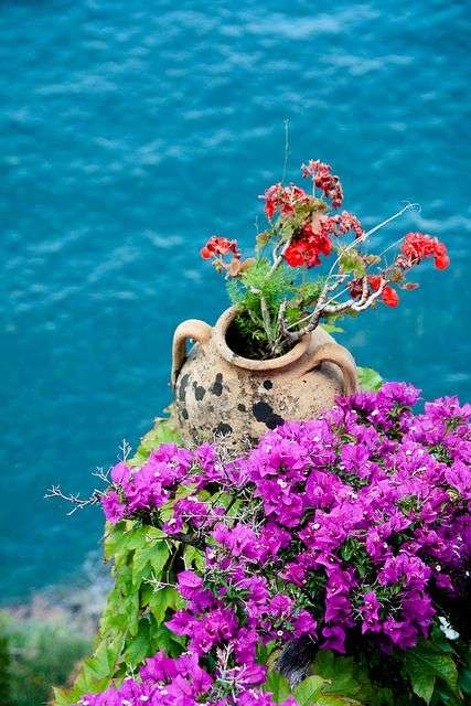 辛波乃別墅隱在木門后,門前則立著一大盆天竺葵。推門而入,姹紫嫣紅,天竺葵如火如荼地盛開著,如今這里已作旅館用,門前長(zhǎng)草青青,有極佳海景。無奈只有旅店客人才能入內(nèi)參觀,悻然作罷。 在園中漫步,進(jìn)入一間圓頂小亭,四下點(diǎn)綴著粉色花,十分賞心悅目。版權(quán)所有山東聊城聊之旅國際旅行社有限公司,轉(zhuǎn)載必究!往前,出現(xiàn)一道回廊,這才拍案叫絕,原來辛波乃別墅的靈魂在此——整個(gè)阿瑪菲海灣盡收眼底,白色羅馬石像,火紅天竺葵。 海風(fēng)撲面吹來,遠(yuǎn)山黛淺,近岸煙波浩瀚,適才一番陡坡蝸行,只是為此刻臨絕頂,果然眾山皆小,映日花兒別樣紅。