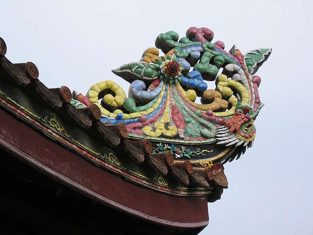 拜庭兩旁古榕參天,大雄寶殿雕塑技術(shù)高超,尤其是粱槽間的24尊飛天樂伎,在中國(guó)國(guó)內(nèi)古建筑中罕見。殿前月臺(tái)須彌座的72幅獅身人面青石浮雕,殿后廊的兩根古婆羅門教青石柱,同為明代修殿時(shí)從已毀的元代古印度教寺移來(lái)。大殿內(nèi)用近一百根海棠式巨型石柱支撐殿堂,俗稱"百柱殿",殿內(nèi)供奉的五方佛像,法相莊嚴(yán),是漢地少有的密宗軌制。大雄寶殿之后的甘露戒壇,系中國(guó)現(xiàn)存三大戒壇之一,壇之四周立柱斗拱和鋪?zhàn)鏖g的24尊木雕飛天。