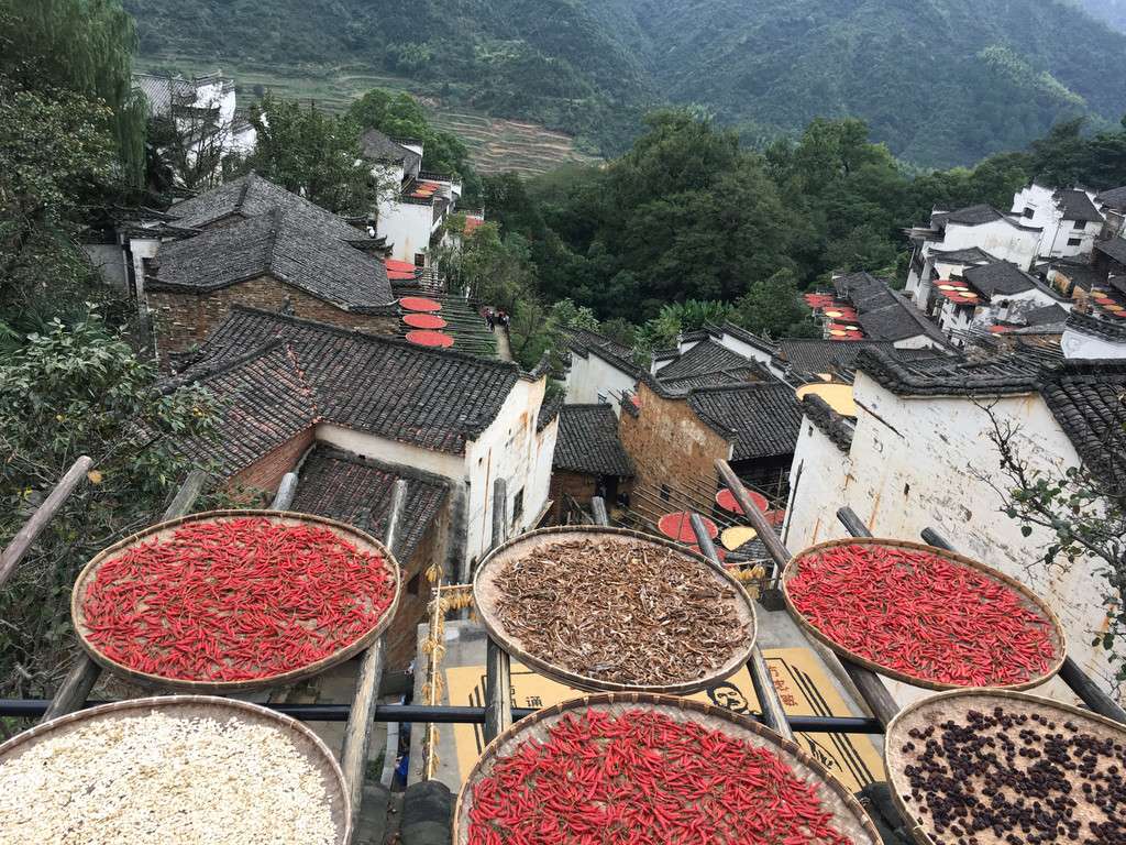 為慶祝首個(gè)“中國農(nóng)民豐收節(jié)”,篁嶺家家戶戶房前屋后晾曬的農(nóng)作物,將篁嶺古村裝扮。 古村內(nèi)有鄉(xiāng)村美食、農(nóng)耕體驗(yàn)等系列活動(dòng),打麻糍、磨辣椒、做月餅,游客與農(nóng)民一起慶豐收、曬豐收、享豐收。