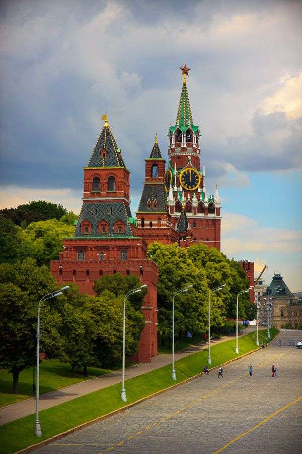 克里姆林宮為紅場最主要建筑,是俄羅斯民族最負(fù)盛名的歷史豐碑,也是全世界建筑中最美麗的作品之一。它初建于12世紀(jì)中期,15世紀(jì)莫斯科大公伊凡三世時初具規(guī)模,以后逐漸擴(kuò)大。16世紀(jì)中葉起成為沙皇的宮堡,17世紀(jì)逐漸失去城堡的性質(zhì)而成為莫斯科的市中心建筑群。克里姆林宮南臨莫斯科河,西北接亞歷山大羅夫斯基花園,東南與紅場相連,呈三角形,周長2000多米。20多座塔樓、參差錯落地分布在三角形宮墻邊,宮墻上有5座城門塔樓和箭樓,遠(yuǎn)看似一座雄偉森嚴(yán)的堡壘。宮殿的核心部分是宮墻之內(nèi)的一系列宮殿,建筑氣宇軒昂,體現(xiàn)出歷代俄羅斯人的聰明才智。另有政府大廈和各種博物館。最具特色的是一組有洋蔥頭頂?shù)母咚?,它們是在紅磚墻面用白色石頭裝飾的,再配上各種顏色外表,如金色、綠色以及雜有黃色和紅色等。它由俄著名建筑師巴爾馬和波斯尼設(shè)計,不同于歐洲古代的哥特式與羅馬式,而與東方清真寺風(fēng)格頗為相似??死锬妨謱m也吸收了西方建筑的精粹,它的幾幢主要建筑都是由意大利設(shè)計師設(shè)計的,所以,克里姆林宮建筑藝術(shù)上博采眾長又獨具特色,獲得普遍贊譽(yù)。