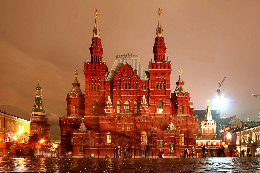紅場緊依克里姆林宮墻,是莫斯科的中央廣場。廣場全長700米,寬130米,總面積9萬余平方米,17世紀(jì)中葉起開始稱“紅場”。17世紀(jì)以來,這里既是莫斯科的商業(yè)中心,又是沙皇政府宣讀重要詔書和舉行凱旋檢閱的場所。十月革命后,成為原蘇聯(lián)慶祝重要節(jié)日的地方。列寧墓位于紅場西南方,初建時為木結(jié)構(gòu),1930年改用石建。陵墓一半埋在地下,一半露出地面。墓前刻有“列寧”字樣的碑石,凈重60噸。南面的圣巴素大教堂,象征著以往鐵幕之都的莊嚴(yán)肅穆。